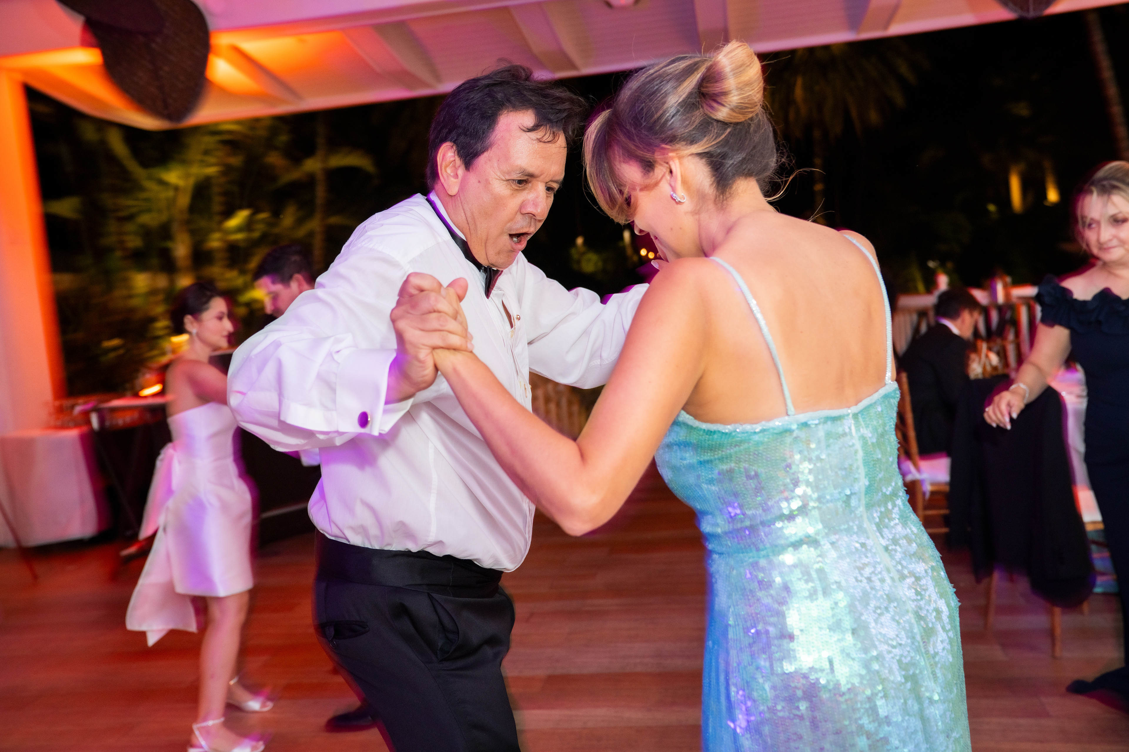 This is the wedding of Angelica and Jason, held in Miami Beach in July 2024. The event was captured using a two-camera setup with Sony A7R cameras and two Godox V1 handheld flashes. The images were processed in Lightroom, with a few photos further refined in Photoshop for more specific adjustments.