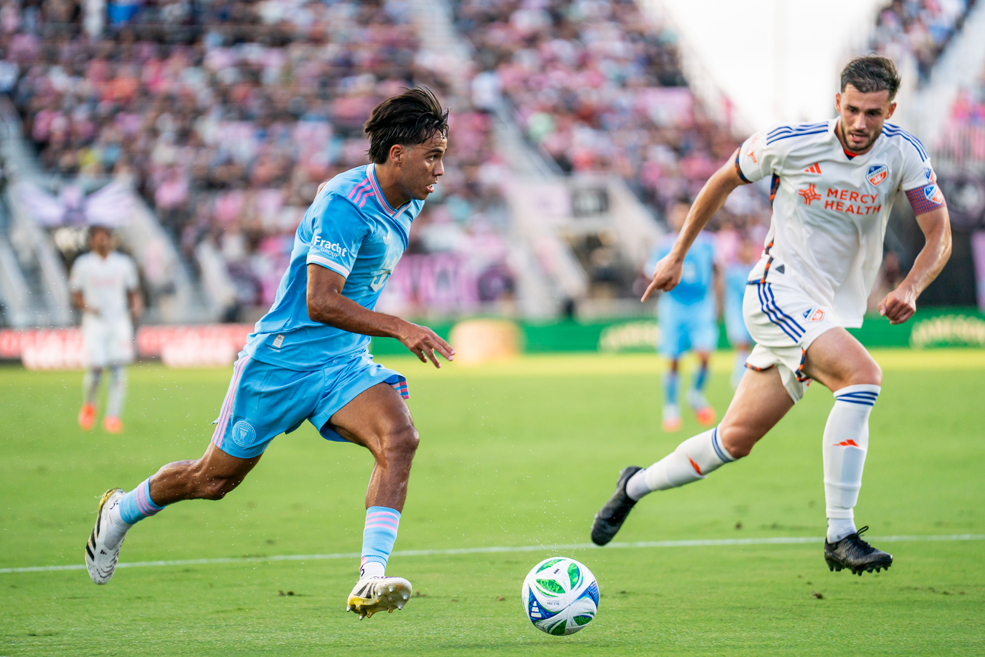 On July 26, 2025, I had the incredible opportunity to photograph the Inter Miami vs FC Cincinnati match — a game that marked the official welcome of Argentine football star Rodrigo De Paul to the Inter Miami family. Capturing his arrival alongside international pop sensation Tini, his partner, added a special cultural crossover to the sports moment.